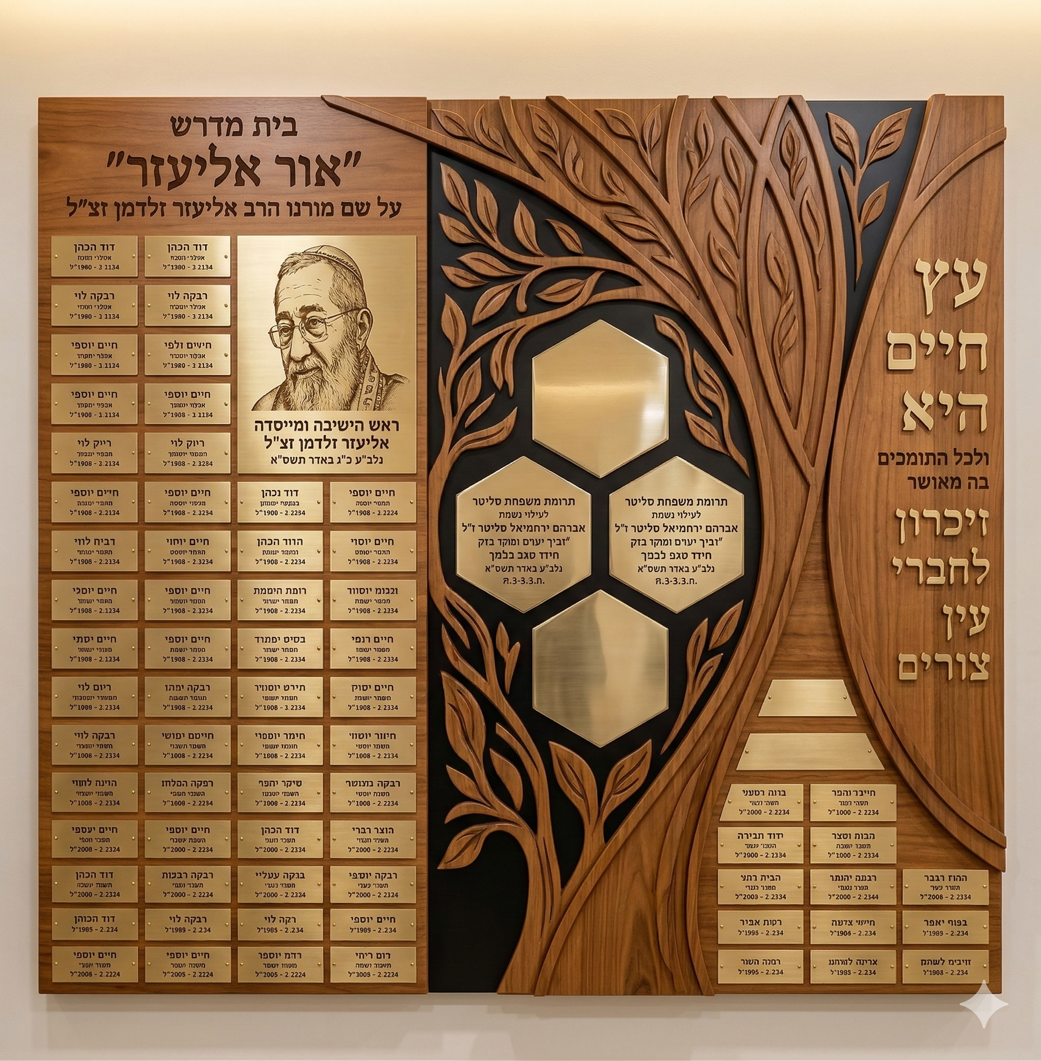 לוח הנצחה בעיצוב מיוחד לשלטי הנצחה לבית כנסת,