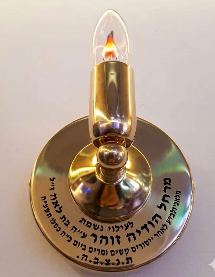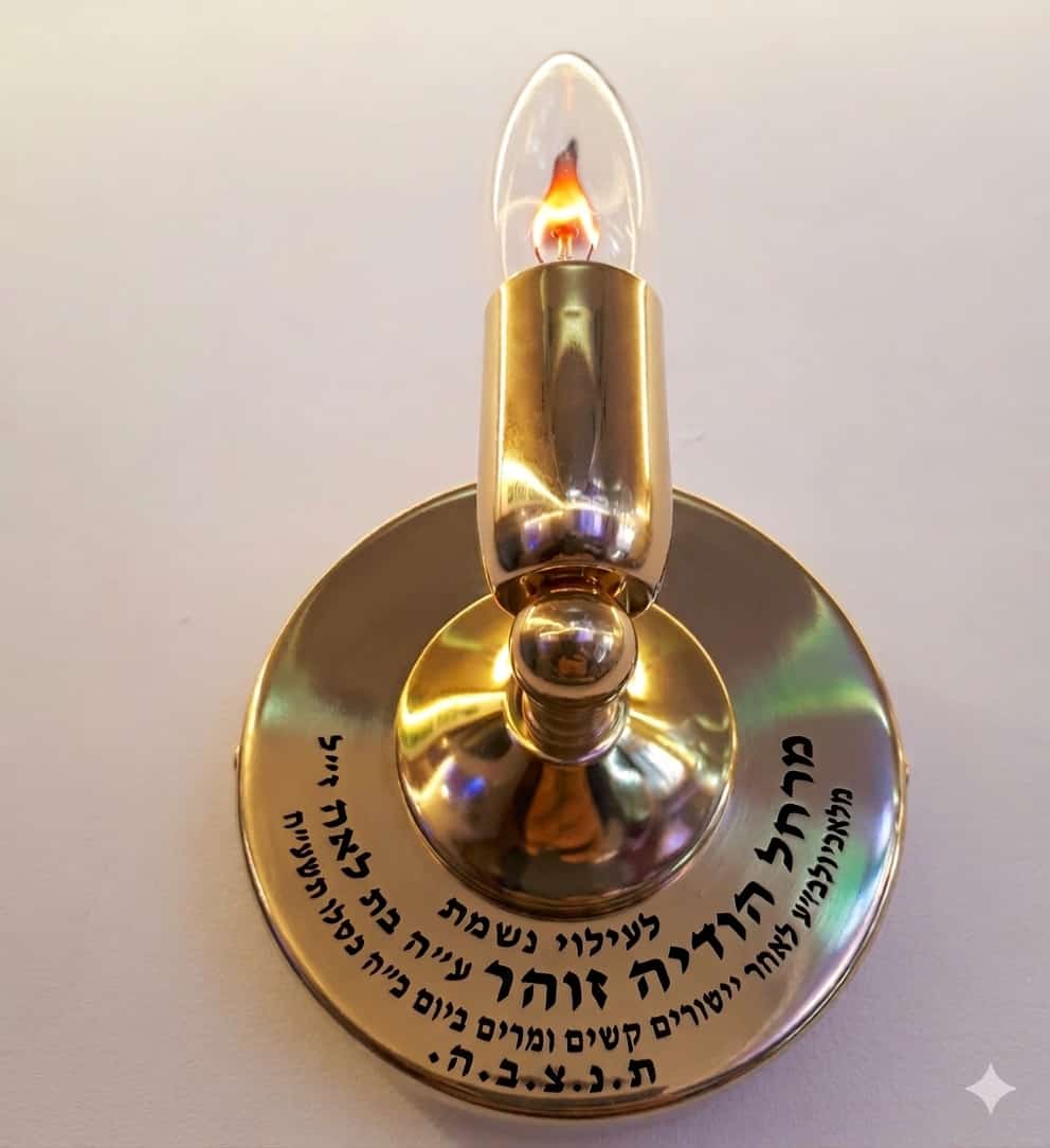 נר זכרון לשקע מוזהב חריטת הנצחה בלייזר