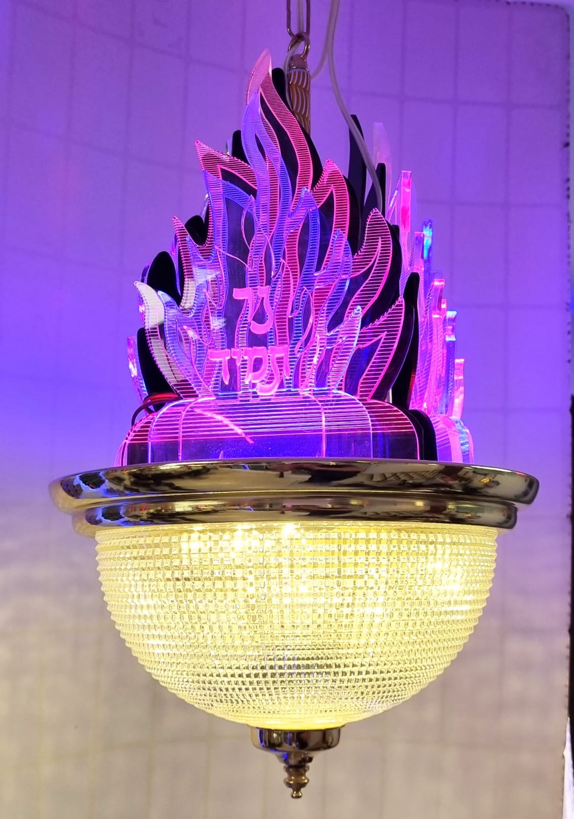 נר תמיד מפואר בצורת להבות, פרספקס שקוף חיתוך מיוחד, זכוכית קריסטל, מואר בלדים,